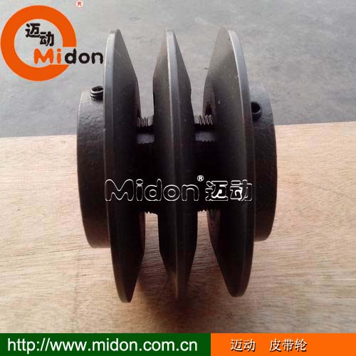 2、皮带轮和锥套的分离,使得轴孔的改变只需改变锥套的孔径,增加了产品通用性,大大降低了产品的库存种类和成本。