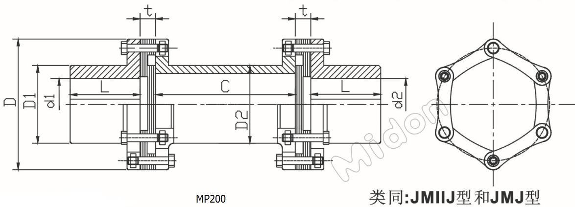 常用名:MP200双膜片加长双组联轴器,膜片联轴器,加长联轴器,薄片联轴器,304不锈钢联轴器,双组膜片联轴器,JMJ联轴器
